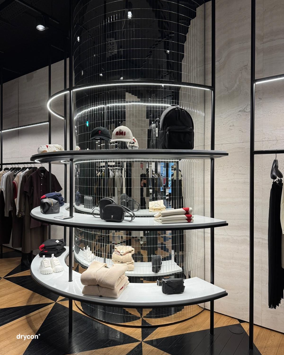 For drycon, this was more than a shopfitting project. It was an opportunity to help translate AMI’s Parisian identity into a refined retail experience in the heart of Hamburg.