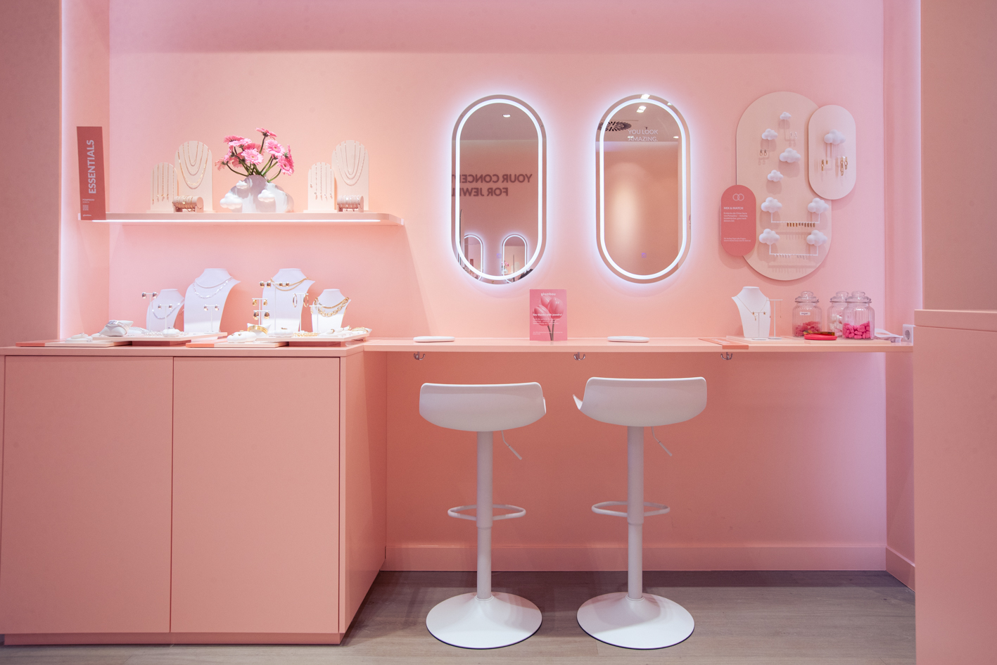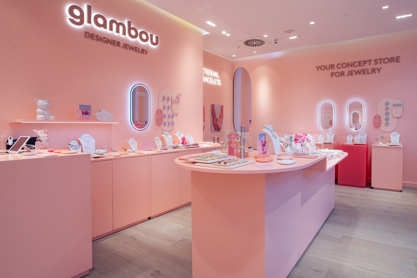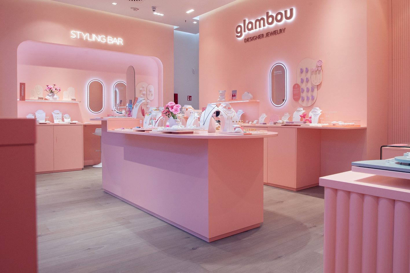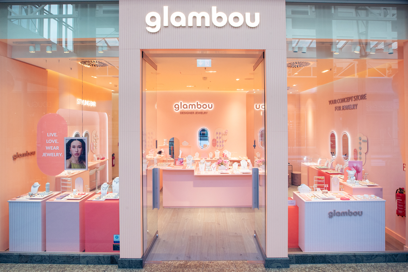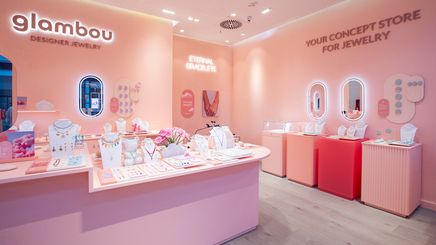 At Westfield Centro Oberhausen, we transformed the unit into the new Glambou boutique from 1–30 April 2025. In just four weeks, an empty retail space became a refined jewelry destination in the brand’s signature soft pink.