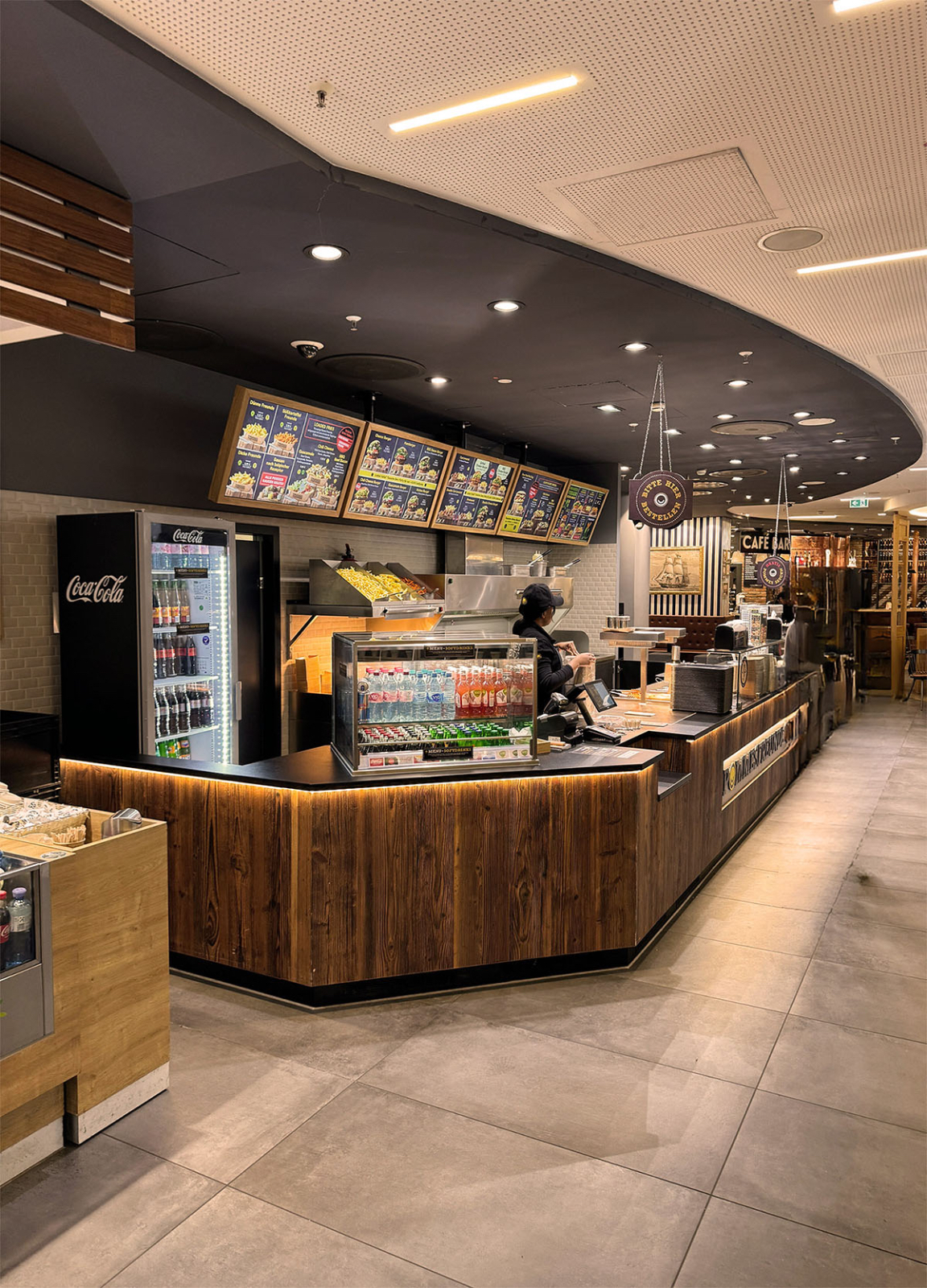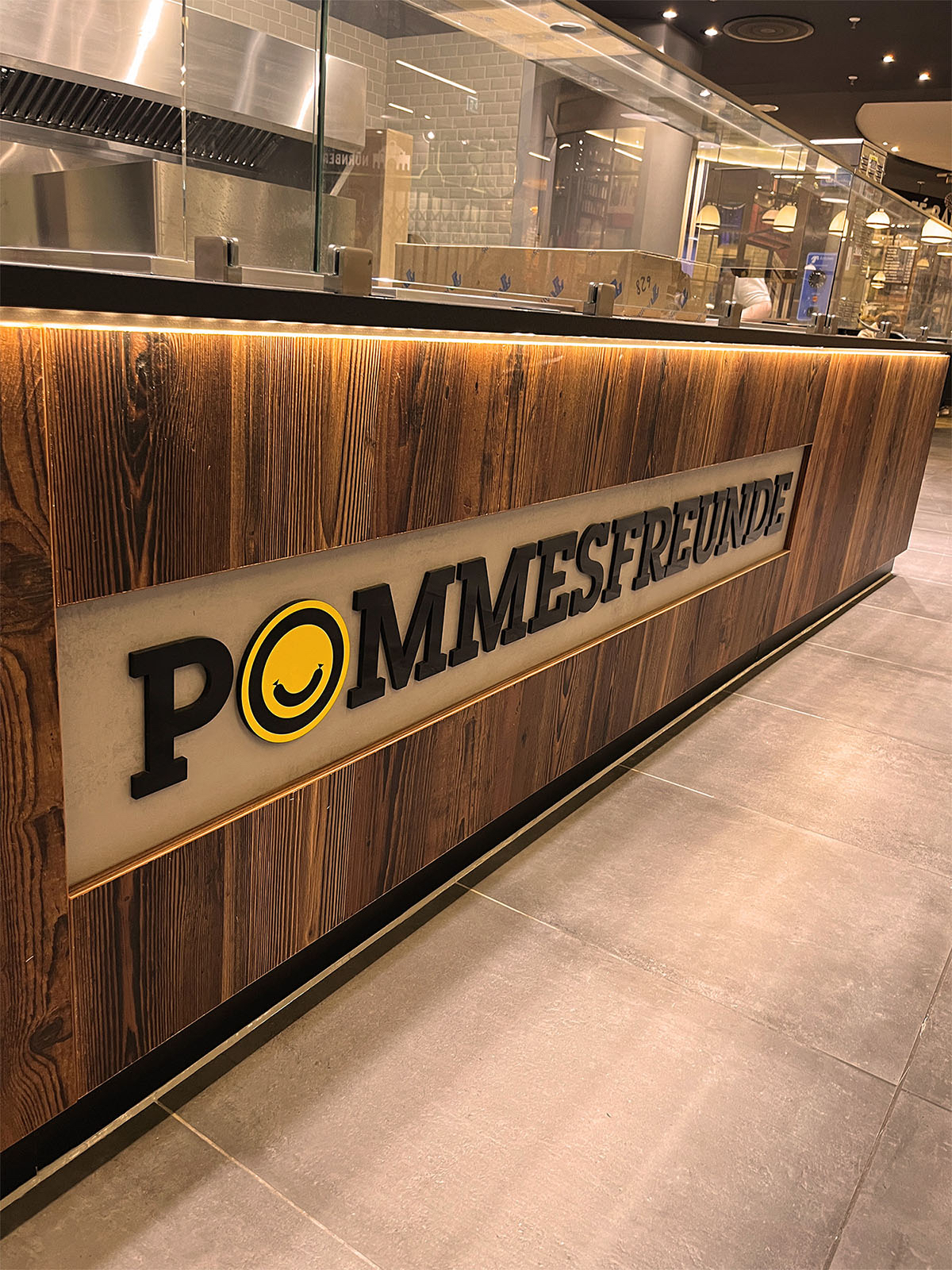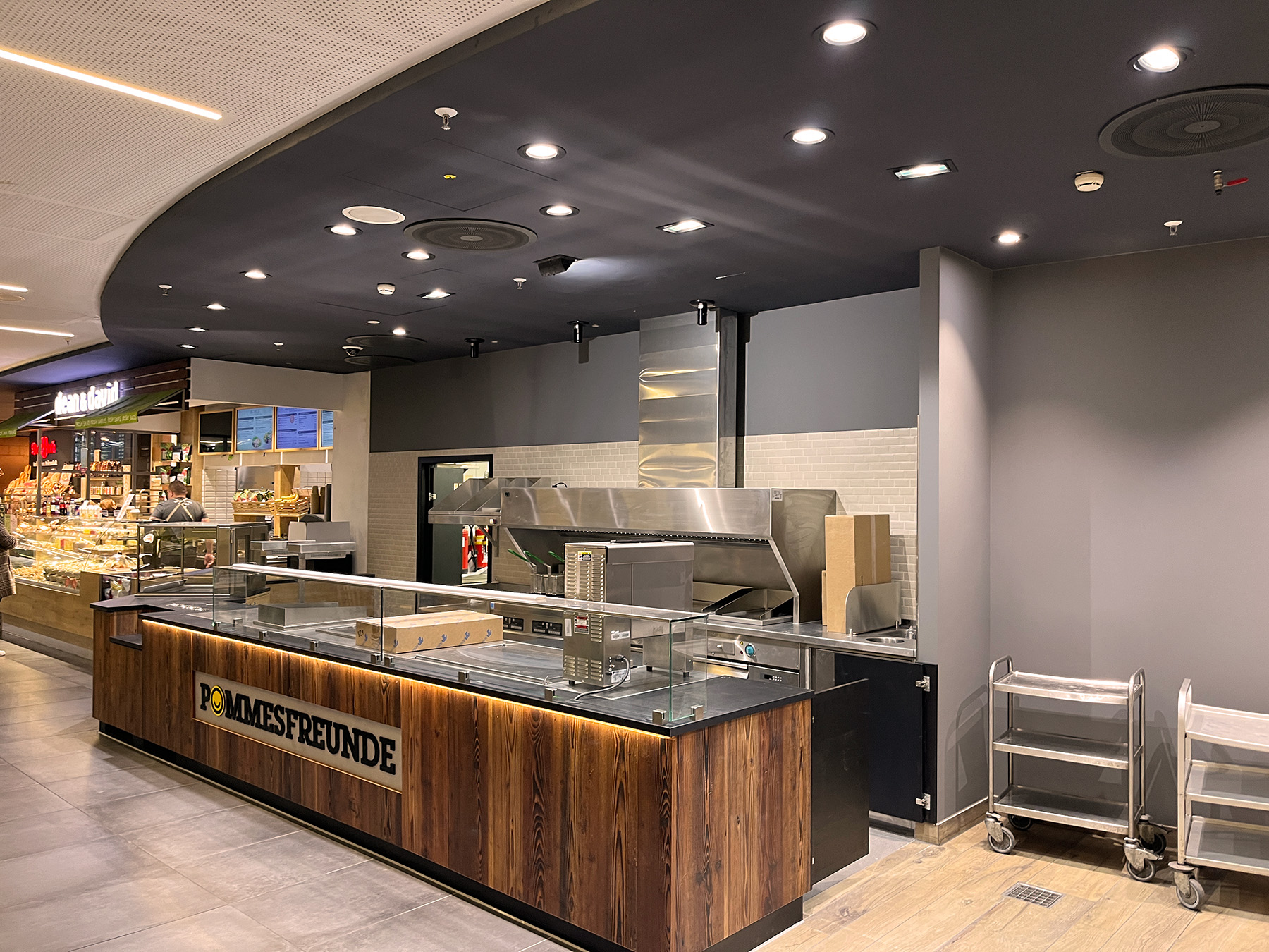 Dans le cadre animé de la gare centrale de Nuremberg, nous avons eu l’occasion, en 2023, de repenser entièrement le point de vente Pommesfreunde. Dans ce lieu où se croisent chaque jour voyageurs, navetteurs et visiteurs, un espace de restauration moderne et hautement fonctionnel a été créé en l’espace de quelques semaines seulement, répondant aux normes les plus élevées tant en matière de design que de réalisation technique.